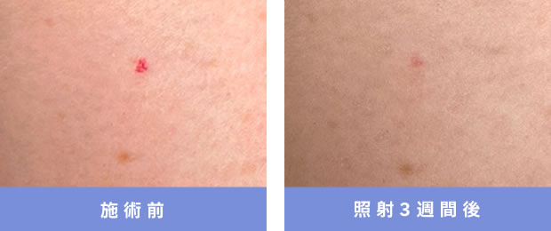 照射直後、血管が消え紅斑とヒリつき感がみられるものの、3~4時間程度で消失。