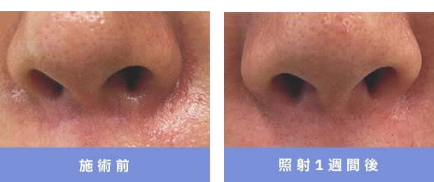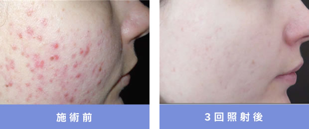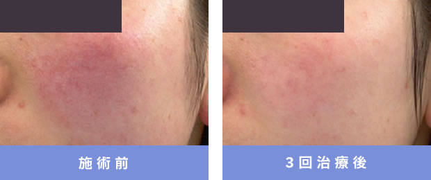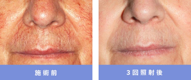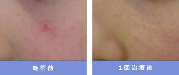 照射直後、血管が消え紅斑とヒリつき感がみられるものの、3~4時間程度で消失。